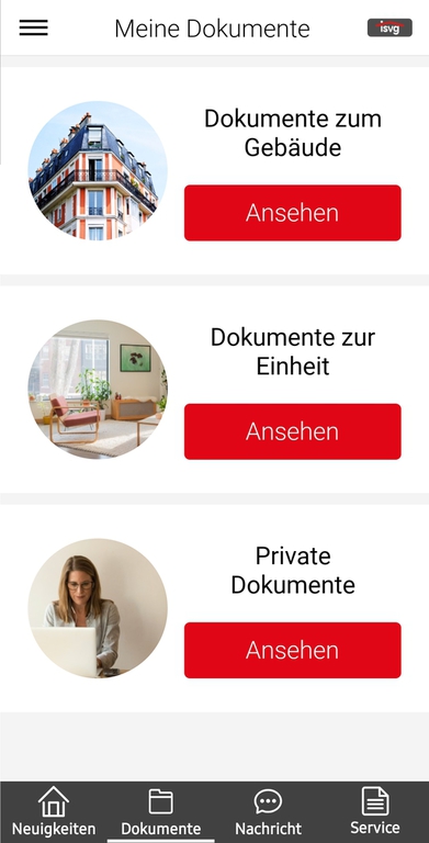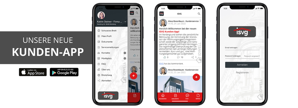 Ihre Mobilität und Zeitersparnis stehen im Fokus. Informieren Sie sich zu jeder Zeit und an jedem Ort rund um Ihre Immobilie auf der ISVG App powered by iDWELL.